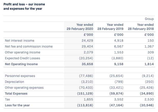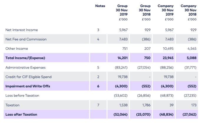 Without getting too deep into the account nuances here, observe that from the year ending November 2018 to November 2019, Starling managed huge revenue gains from interest, fees and the like. And that its final losses after taxation also rose sharply.