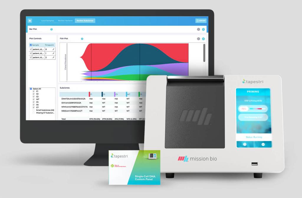 Mission Bio’s single-cell multi-omics platform is unique in the therapeutic industry. What it allows is the ability to zero in on a single cell, observing both genotype (fully genetic) and phenotype (observable traits influenced by genetics and other factors) impact resulting from use of various therapies during clinical trials. Mission’s Tapestri can detect both DNA and protein changes within the same single cell, which is key in determining effectiveness of targeted therapies because it can help rule out the effect of other factors not under control when analyzing in bulk (i.e. across groups of cells).