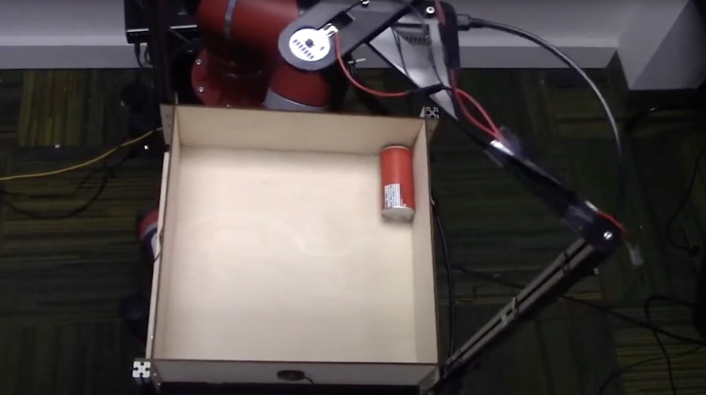 A new experiment from CMU features Rethink Robotics’ Sawyer moving objects inside a metal tray to get a sense of the sounds they make as they roll around, slide and crash into the sides. There are 60 objects in all — including tools, wooden blocks, tennis balls and an apple — with 15,000 “interactions” recorded and cataloged.
