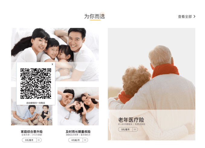 Another part of the business focuses on more traditional health insurance services, with monthly payments again starting at low amounts of money, such as a long-term serious health insurance that starts at 4 yuan ($0.58) per month.