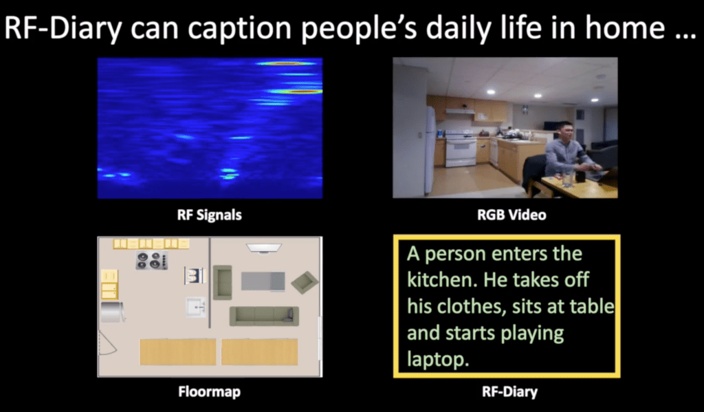The system, which is dubbed “RF-Diary” by the research team that created it, can identify whether a person is sleeping, reading, cooking, watching TV or more, by combining a map of a person’s living space with the types of activities that happen in different activities. The research team behind it trained the system on wireless signals generated by people performing known activities in these spaces, and was subsequently able to categorize activities from new people, in entirely new locations using the knowledge it gained through training.