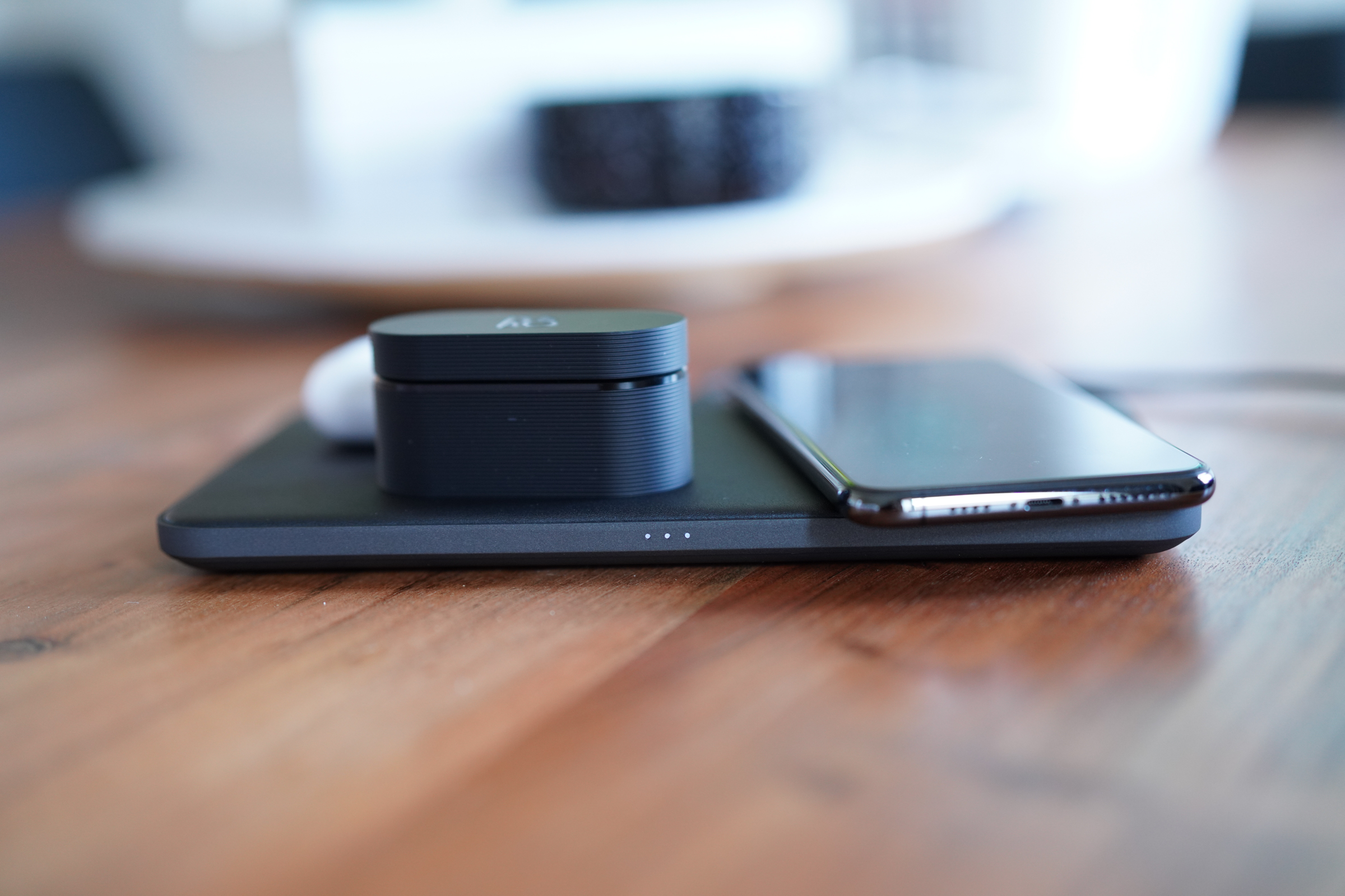 In testing, it worked just as advertised, detecting my iPhone XS Pro Max no matter what orientation or where I lay it on the pad (provided the phone’s own coil was fully on the pad, of course). Ditto when I added a second iPhone, as well as AirPods Pro, and another set of wireless earbuds I have that feature a Qi-enabled charging case. You can even slide the iPhone along the surface of the pad and it will continue to charge, without losing the connection as the field tracks the device.