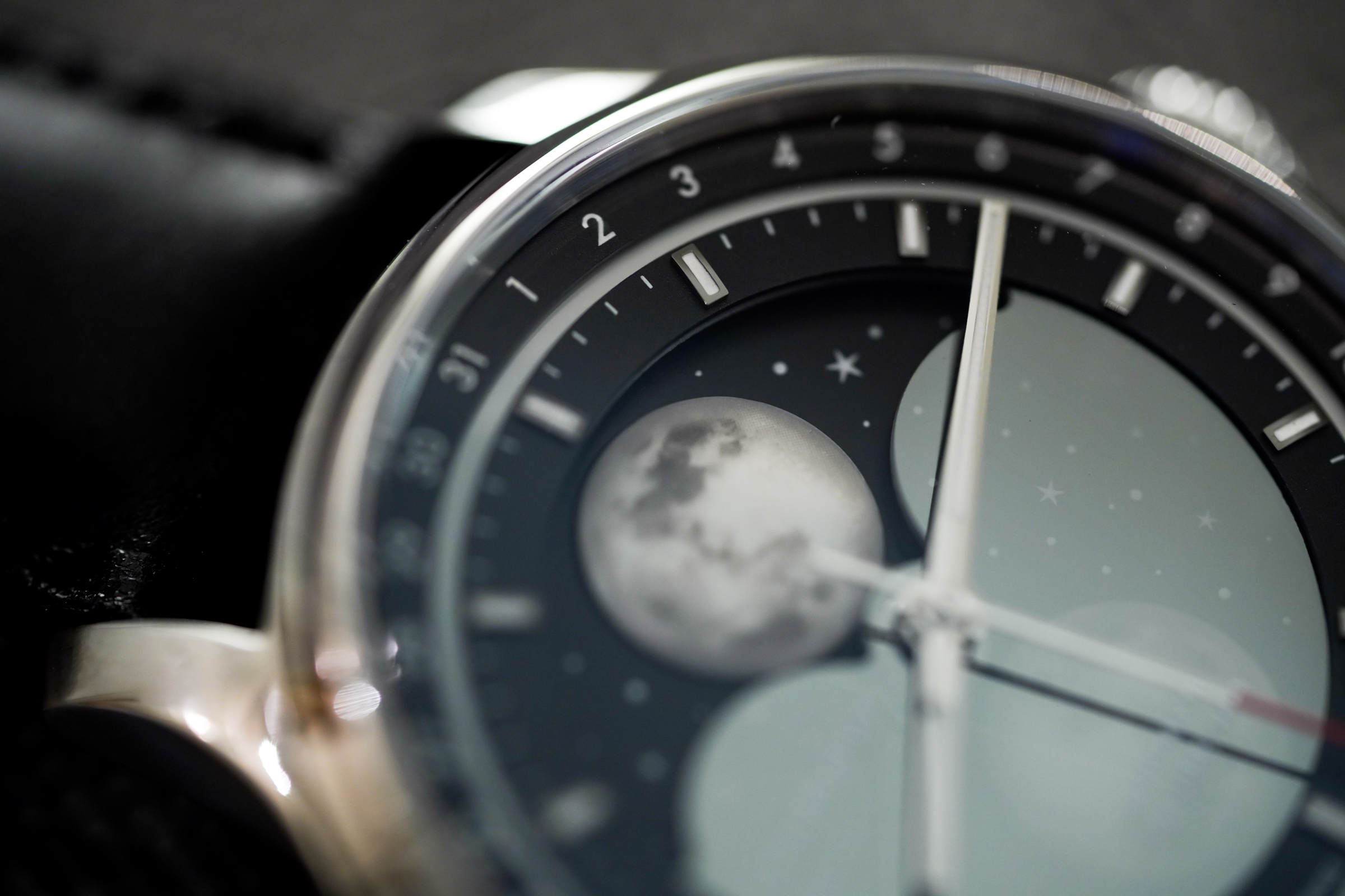 Setting the moonphase is very easy, and accomplished by pulling the crown to its second position and turning it counter-clockwise. Clockwise sets the date, but you can adjust both independently, and also independently of the time. Getting the phase accurate can be a bit trickier, but Christopher Ward provides easy instructions in the included manual — or you can use an app like Watchville, which provides a very handy and highly accurate virtual watch face with moonphase to set your analog by.