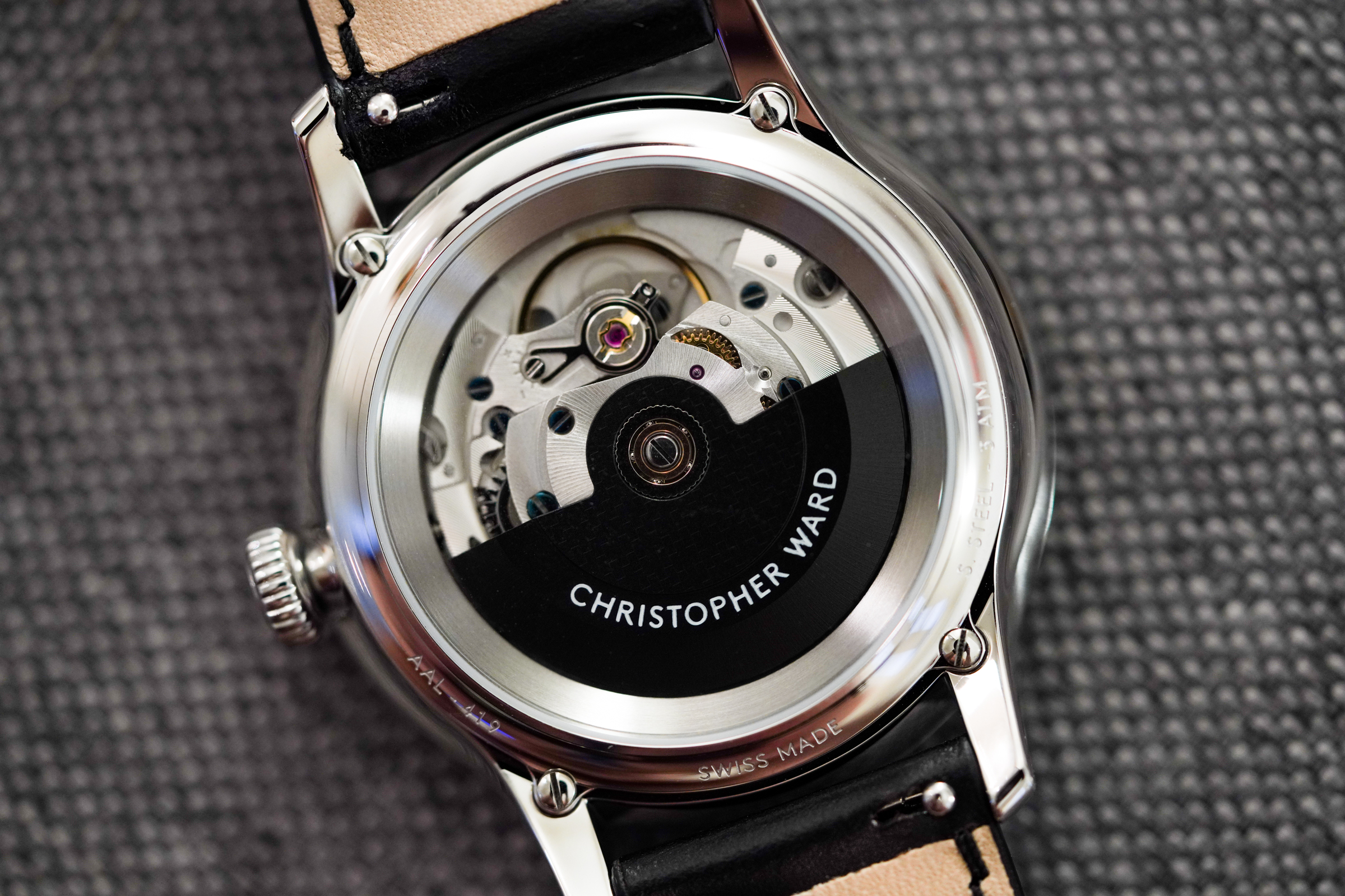 The C1 also includes a calendar complication, which occupies the outer ring of the watch face and uses a sub-dial red highlight to mark the date. The watch measures 40.5 mm on the wrist, with a primarily black dial and a polished stainless steel case. It’s 12.35mm thick, and spans 48.55mm lug-to-lug. The automatic movement is wound with a custom Christopher Ward rotor that’s finished in black with a diamond-like carbon (DLC) coating, and the moment is 26 jewels with a 38-hour power reserve when fully wound. The included strap is a black Italian shell cordovan leather, with a deployant clasp.