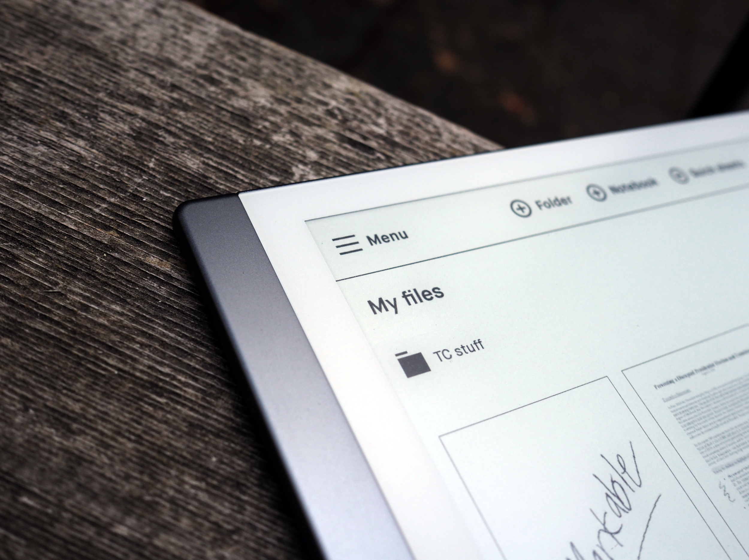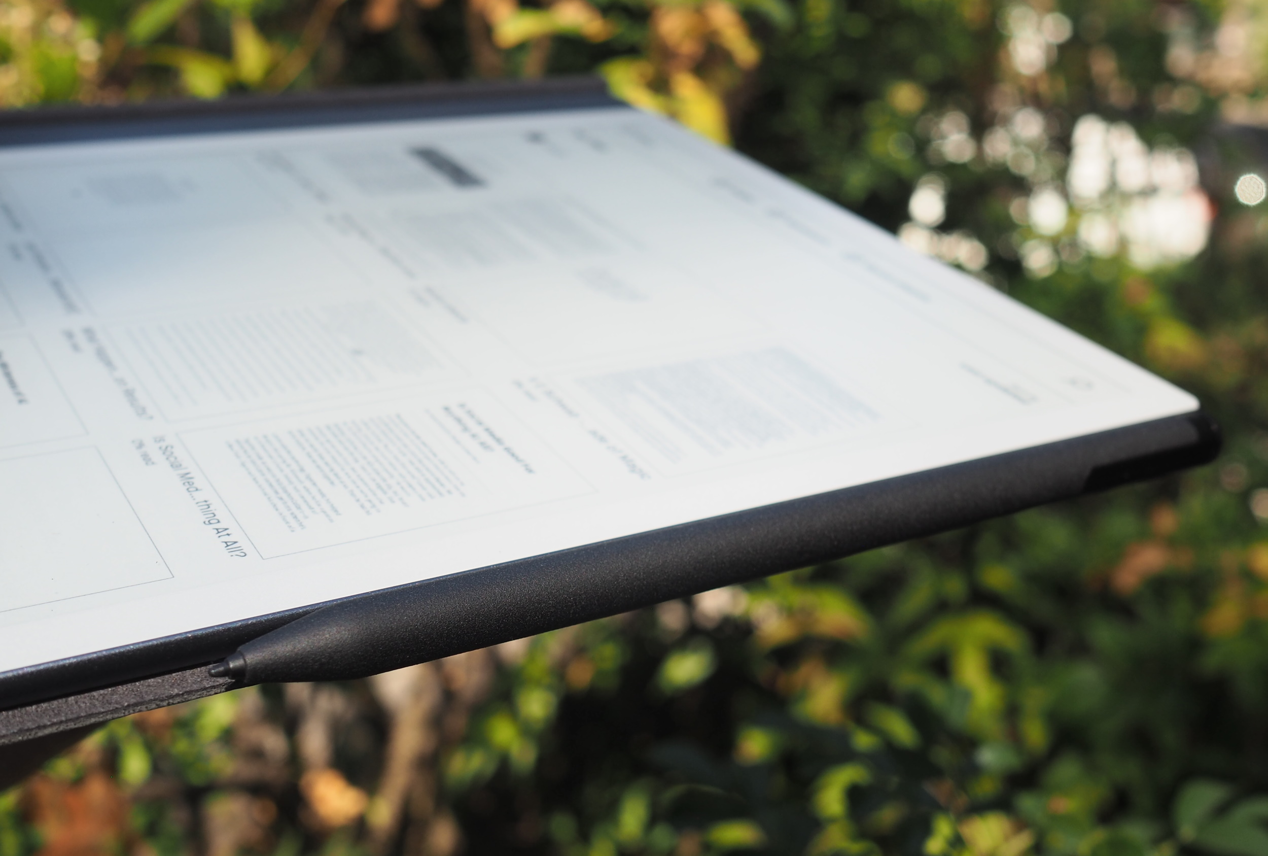 There’s no frontlight, which I understand is a deliberate choice — you’re supposed to work with this thing under the same lighting you’d use for a paper document. Still, I felt its absence occasionally when reading.