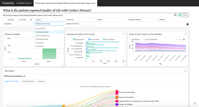 Founded in 2015 as a spin-out of research group Semantic Computing, Semalytix pitches itself as a data and AI analytics startup that wants to bring more real-world evidence to the development of new drugs and treatments. Its flagship product, dubbed “Pharos,” is a patient research tool that pulls in and cleans up various unstructured public data — such as blogs, forums, social media etc. — and then applies algorithms to deliver real-time patient insights into unmet needs, treatment experience and how severely a disease impacts the lives of those who suffer from it.