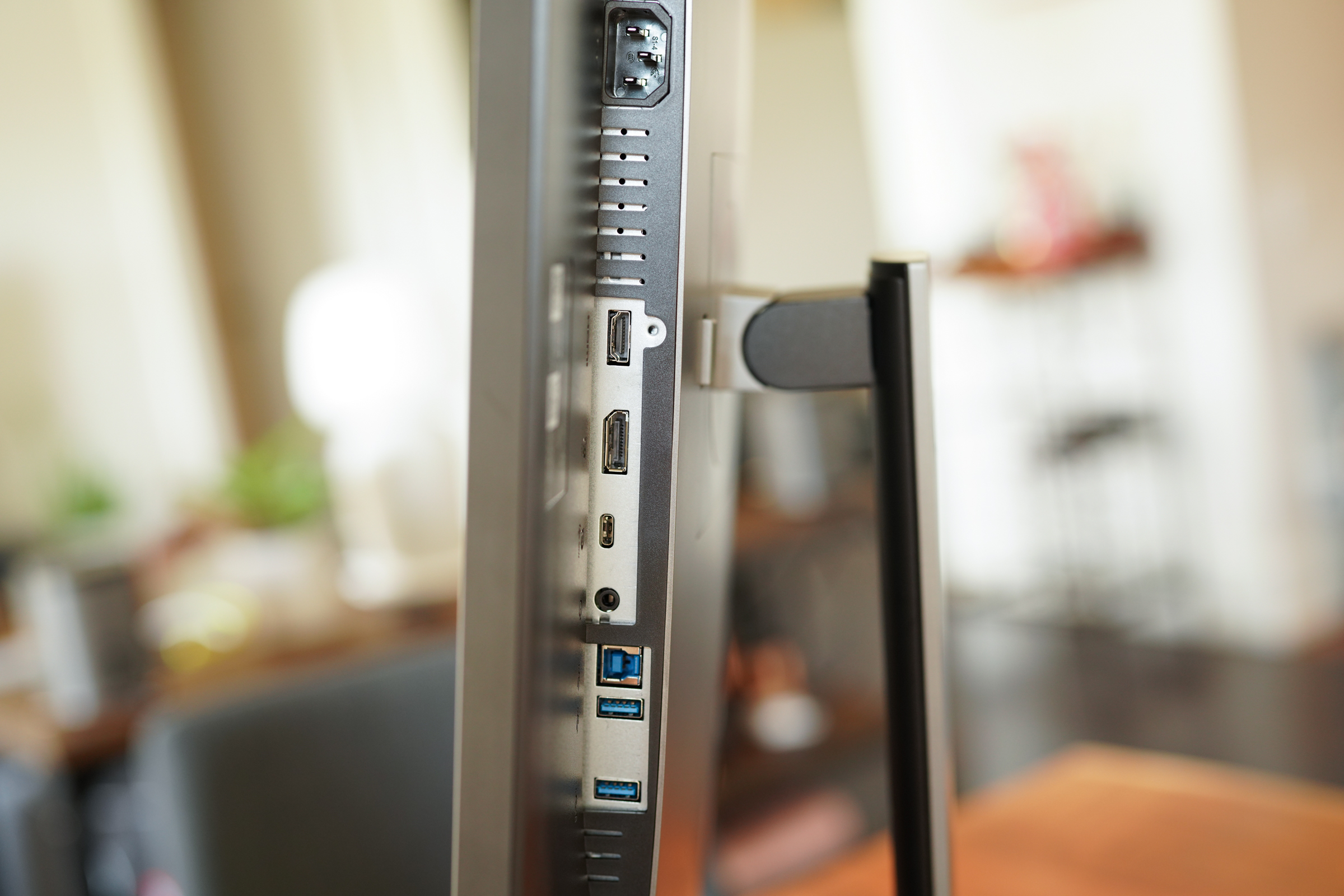For display connections, the U3219Q has 1 DisplayPort 1.4 and 1 HDMI 2.0 (both of which support HDCP 2.2 for playing back copyright protected content). There’s also a USB Type-C port which can provide DisplayPort 1.4 connectivity, as well as Power Delivery and USB 2.0 data connectivity, with a DP cable and a C-to-C cable included in the box. The monitor also features a USB 3.0 cable and port for connecting it to your computer to act as a hub, providing 2 USB 3.0 ports for accessories, as well as 2 USB 3.0 ports at the side of the display, and two of those also include charging power. While there are no built-in speakers, there is a 3.5mm audio output port for connecting headphones or an external speaker.