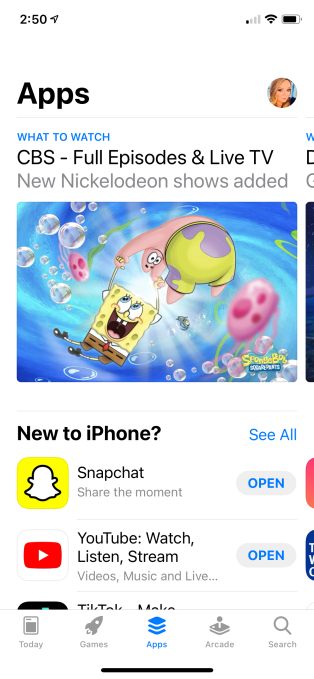 Snapchat has been benefiting, too, from a prominent position on the App Store. Apple currently has it featured in an editorially curated list of app suggestions called “New to iPhone?” on the App Store’s “App” homepage. The collection, which you don’t even have to scroll down to find, recommends apps that first-time iPhone users will want to download.