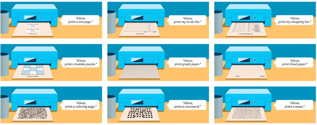 Some of these voice commands may be more useful than others. Being able to print “last Sunday’s crossword,” then followed by “last Sunday’s crossword answers,” could be fun for those who no longer get a newspaper but miss the puzzles. However, asking Alexa to “print a salmon recipe” is something of a crapshoot. Most people want to choose a specific recipe, not waste paper and ink on a recipe suggestion.