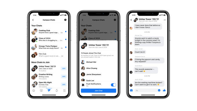 Hung said Facebook hasn’t tested Facebook Campus before today, even with small groups. Instead, this launch is considered a pilot for the new experience. The company did spend time conducting roundtables with universities and with student groups to gain product insight and feedback, however.