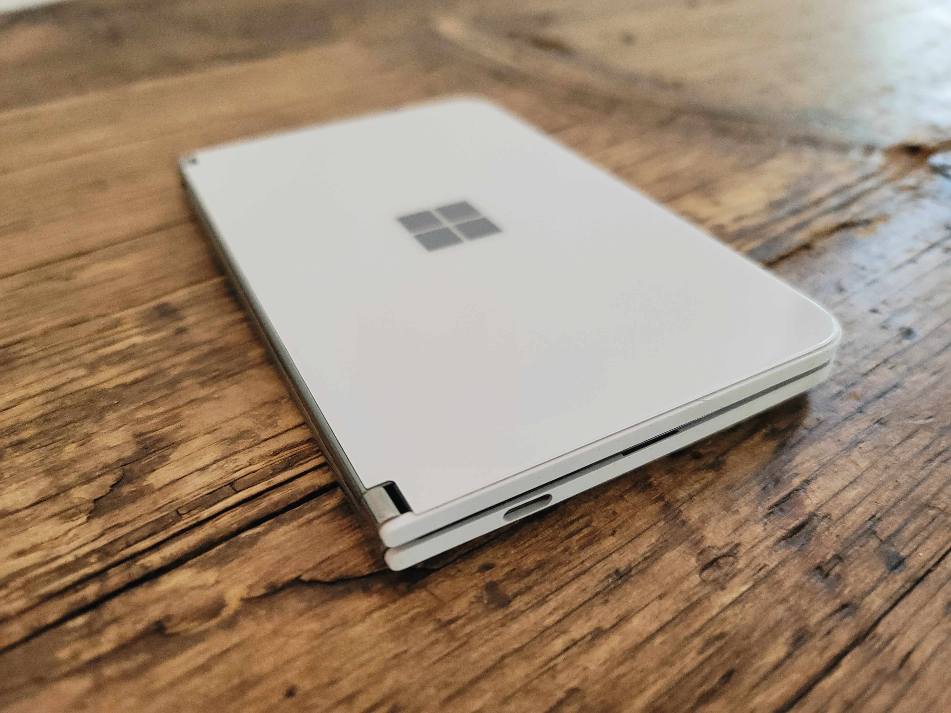 There are other pragmatic considerations with the design choices here. The book design means there’s no screen on the exterior. The glass and mirror Windows logo looks lovely, but there’s no easy way to preview notifications. Keep in mind the new Galaxy Fold and Motorola Razr invested a fair amount in the front screen experience on their second-generation devices. Some will no doubt prefer to have a device that’s offline while closed, and I suppose you could always just keep the screens facing outward, if you so chose.
