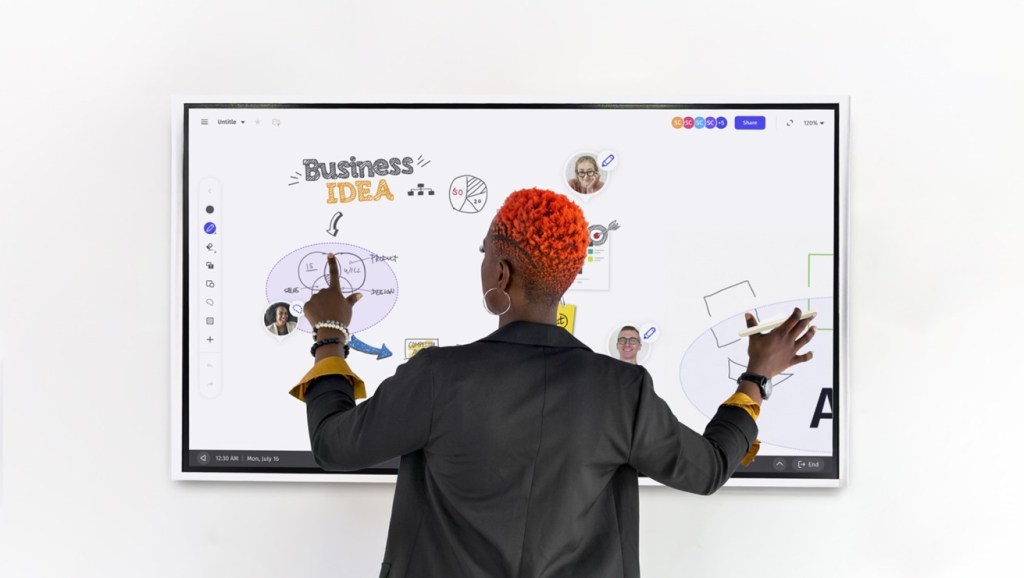 Vibe promises low latency drawing response time of fewer than 7 milliseconds for sketching and writing, as well as a collaboration experience that lets participants collaborate across devices, including via their web browser, iPad or Android tablet, in addition to the Vibe board itself.