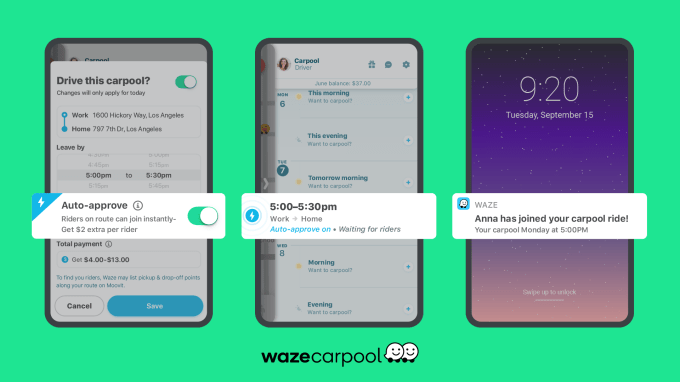 The Waze Carpool service received a few updates, too. It now offers instant booking and auto approve features for drivers and riders. Drivers can also get real-time ride requests as they begin a drive, allowing them to pick up more riders along the way.