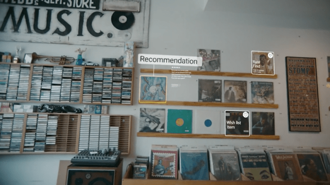 In a produced video that wasn’t a demo of the device but was meant to show off relevant research, Facebook depicted some theoretical uses for AR glasses: getting an overlay of street directions, music recommendations in a record store or even visual alert showing you where your lost keys went.