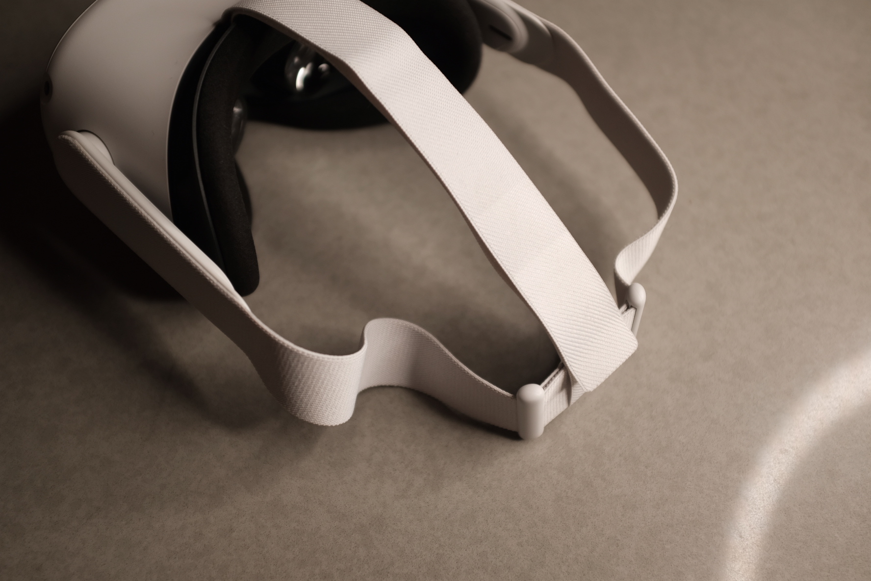 That brings me to the headset housing, it has ditched the fabric-covered enclosure of the original and is now completely hard-shelled with a new two-tone light gray and black design. I like the colors, which have more of a toy-like appearance and appear a bit friendlier. It feels significantly smaller than the original Quest and the 10% reduction in weight is also apparent to heavy users of the previous generation. I was worried a shift to a plastic shell would feel cheap like the Rift S did compared to the original Rift, but the new headset housing is a highlight of the new design.
