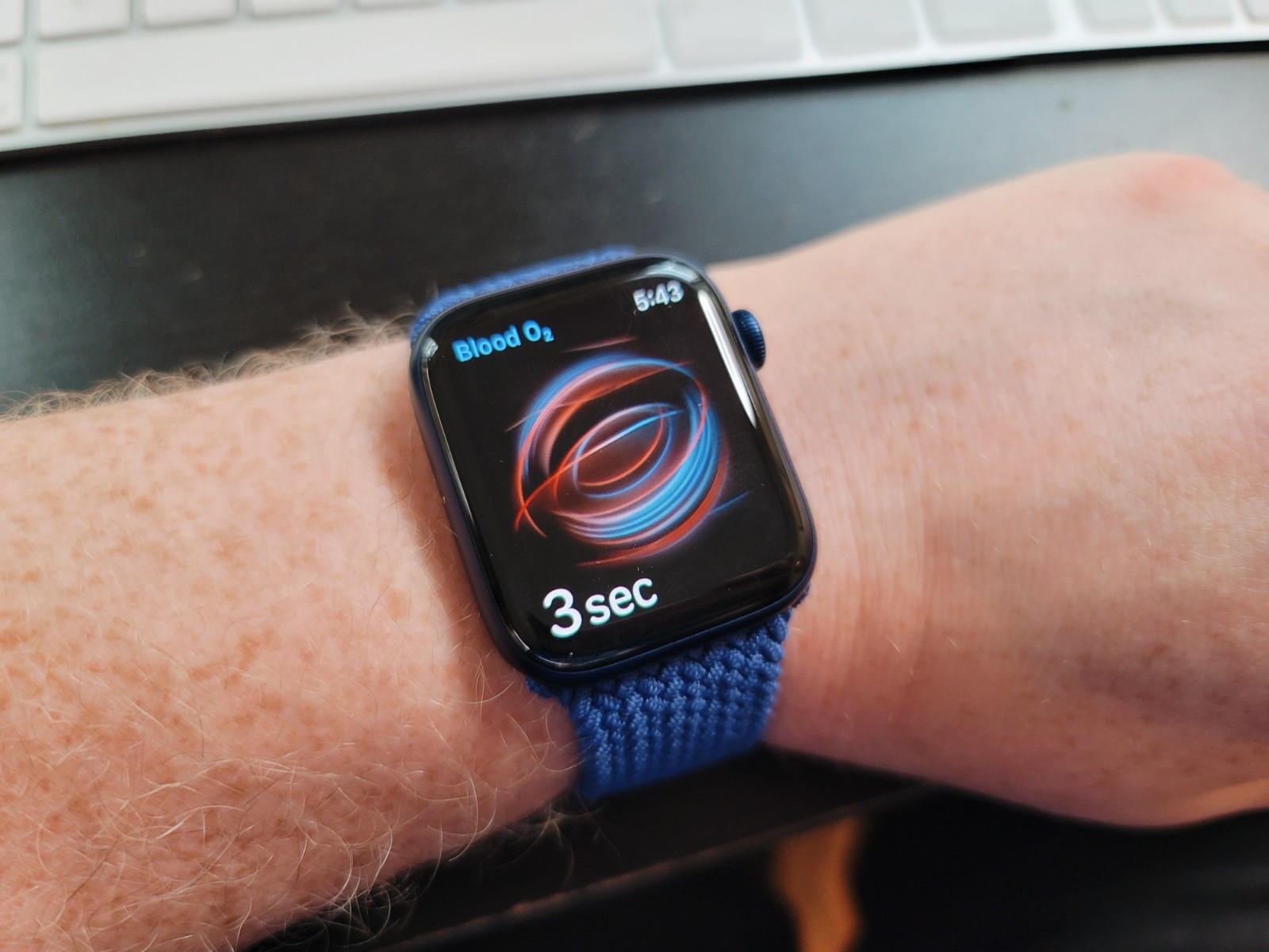 The new blood oxygen sensor is made up of four LED clusters and four photodiodes. Incorporated into the completely redesigned back crystal, this new sensor works in concert with the Blood Oxygen app to determine your blood oxygen level. The testing will work in the background, or you can enable it through the app. The process takes about 15 seconds, though there are a lot of variables that can mess up a reading, including how much you move and the tightness and placement of your band. I found myself having to repeat it a couple of times to get a good reading.