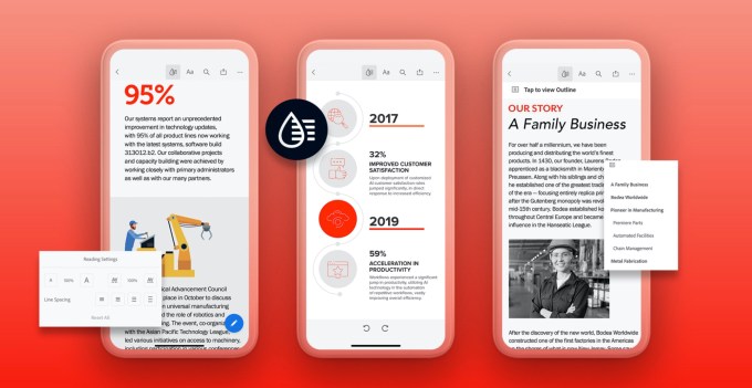 After a few months of quiet testing, Liquid Mode is being publicly rolled out in Adobe’s Acrobat Reader app for iOS and Android today, with plans to bring it to desktops later. Adobe CTO Abhay Parasnis also tells me they’ve been working on an API that’ll allow similar functionality to be rolled into non-Adobe apps down the road.
