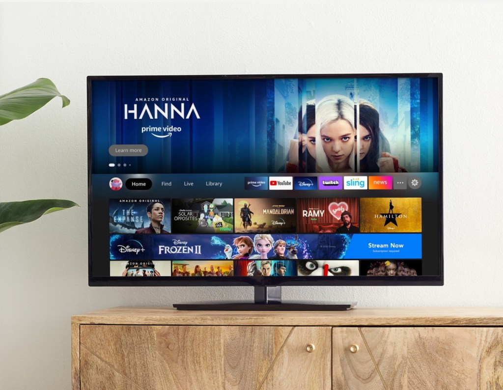 Fire TV’s navigation has also been simplified. Gone is the lengthy row of tabs at the top of the screen to click through. Instead, navigation has moved down the page next to your profile icon, and now includes tabs for Home, Find, Live, and Library, alongside a row of your favorite apps.