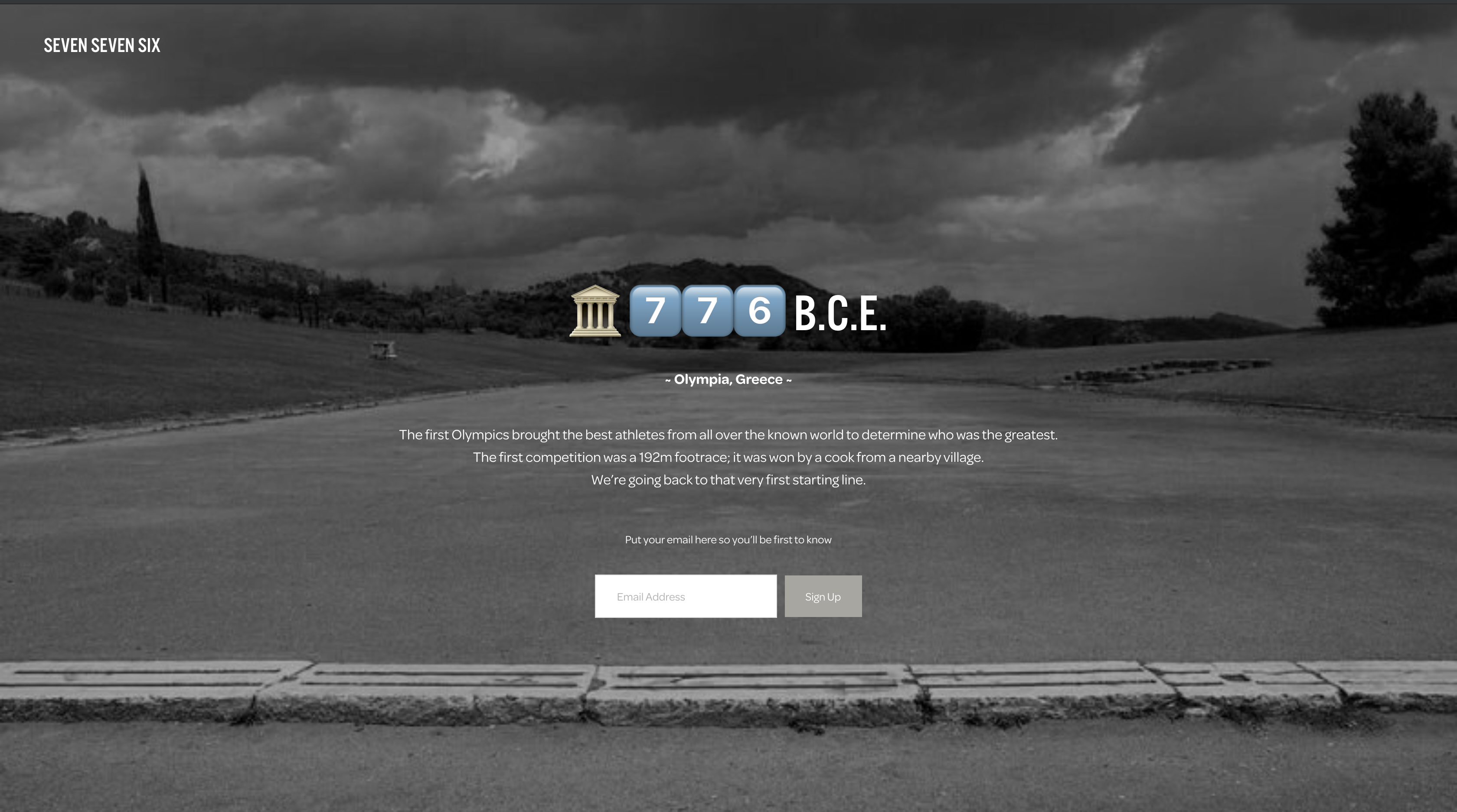 The website reads: “The first Olympics brought the best athletes from all over the known world to determine who was the greatest. The first competition was a 192m footrace; it was won by a cook from a nearby village. We’re going back to that very first starting line.”