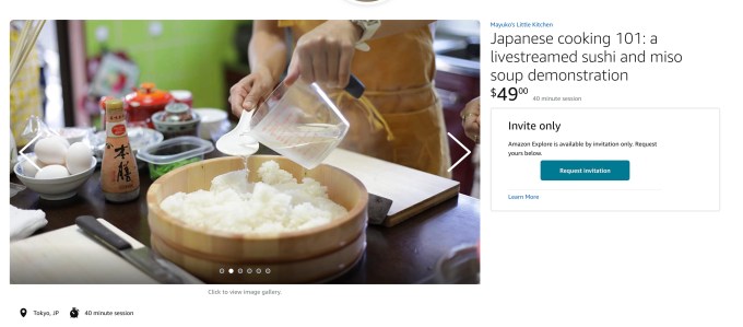 Pricing for the sessions is variable. At launch, there’s a virtual styling session being offered for just $10, for example. Meanwhile, a virtual tour of NYC’s Central Park is going for $150. Amazon says the hosts set their own prices and hours, without having to abide by any set minimum or maximum price. However, the company declined to detail any revenue-sharing agreements.
