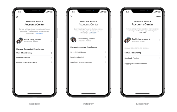 Despite being under antitrust investigations in the U.S. and E.U., Facebook today is rolling out a new feature that highlights the extent to which its suite of apps now interoperate. The company this morning introduced a consumer-facing tool called “Accounts Center,” which is found in the Settings section of Facebook, Instagram and Messenger. The feature aims to give users the ability to manage their connected experiences across Facebook-owned apps, like Single Sign On and Facebook Pay, for example.