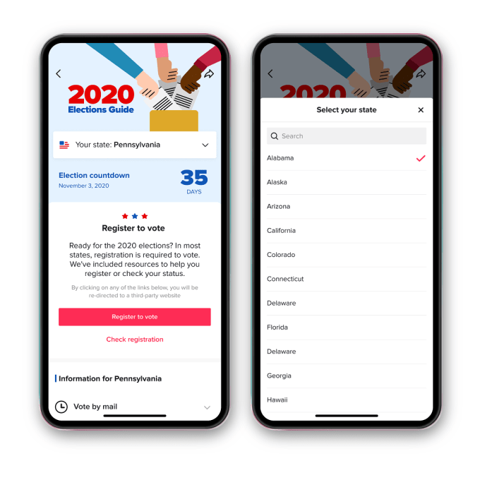 Though TikTok is in the middle of fighting off the Trump administration’s attempt to ban its app in the U.S. over data privacy concerns, the company today is launching a new feature focused on the 2020 U.S. elections. TikTok announced this morning it’s introducing an in-app guide to the elections, which offers its 100 million U.S. users information about the candidates, details about how to vote and educational videos about misinformation, media literacy, the elections process and more.