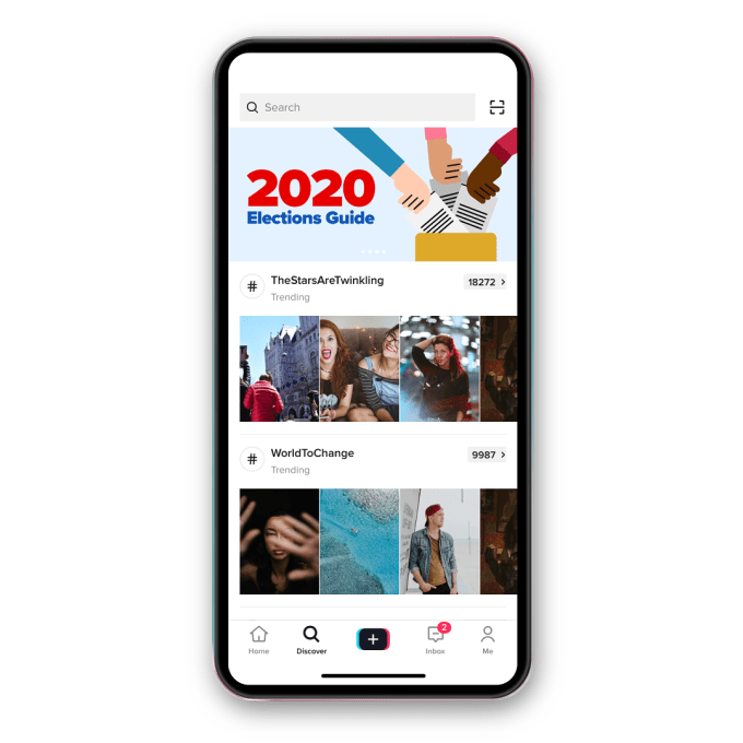 TikTok will feature this elections guide starting today in the U.S., where it will be accessible both on the TikTok Discover page and on election-related search results. It also will feature the guide at the bottom of videos relating to the elections and on videos posted by verified political candidates, it says.