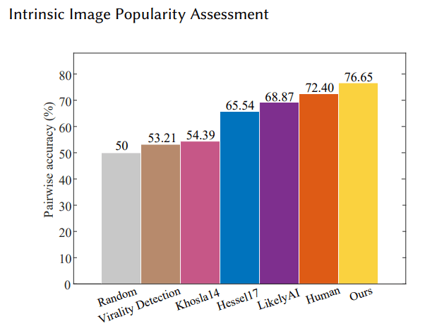 It also showed an ability to outperform humans, with a 76.65% accuracy on predicting how many likes an Instagram photo would garner versus a human accuracy of 72.40%.