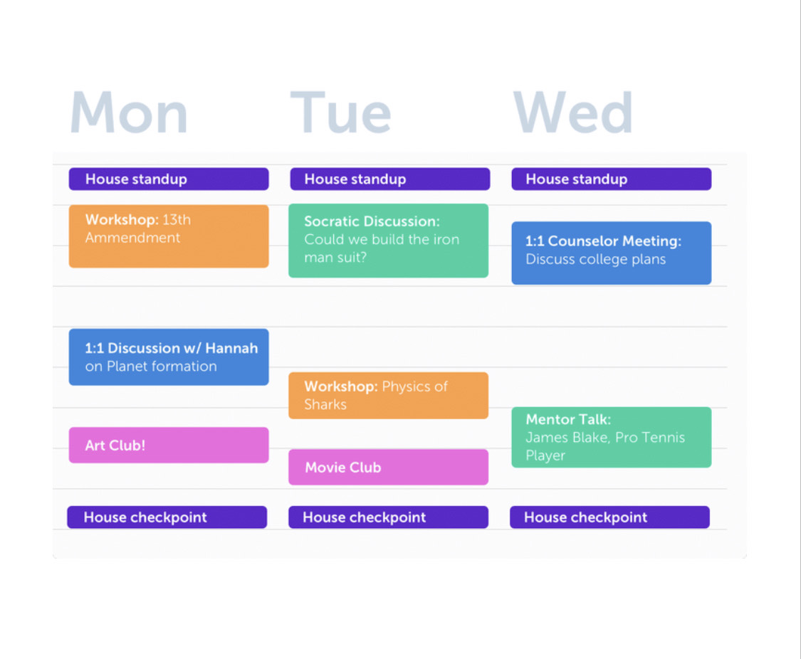 Beyond the self-directed study, Sora offers a series of Socratic seminars and workshops.