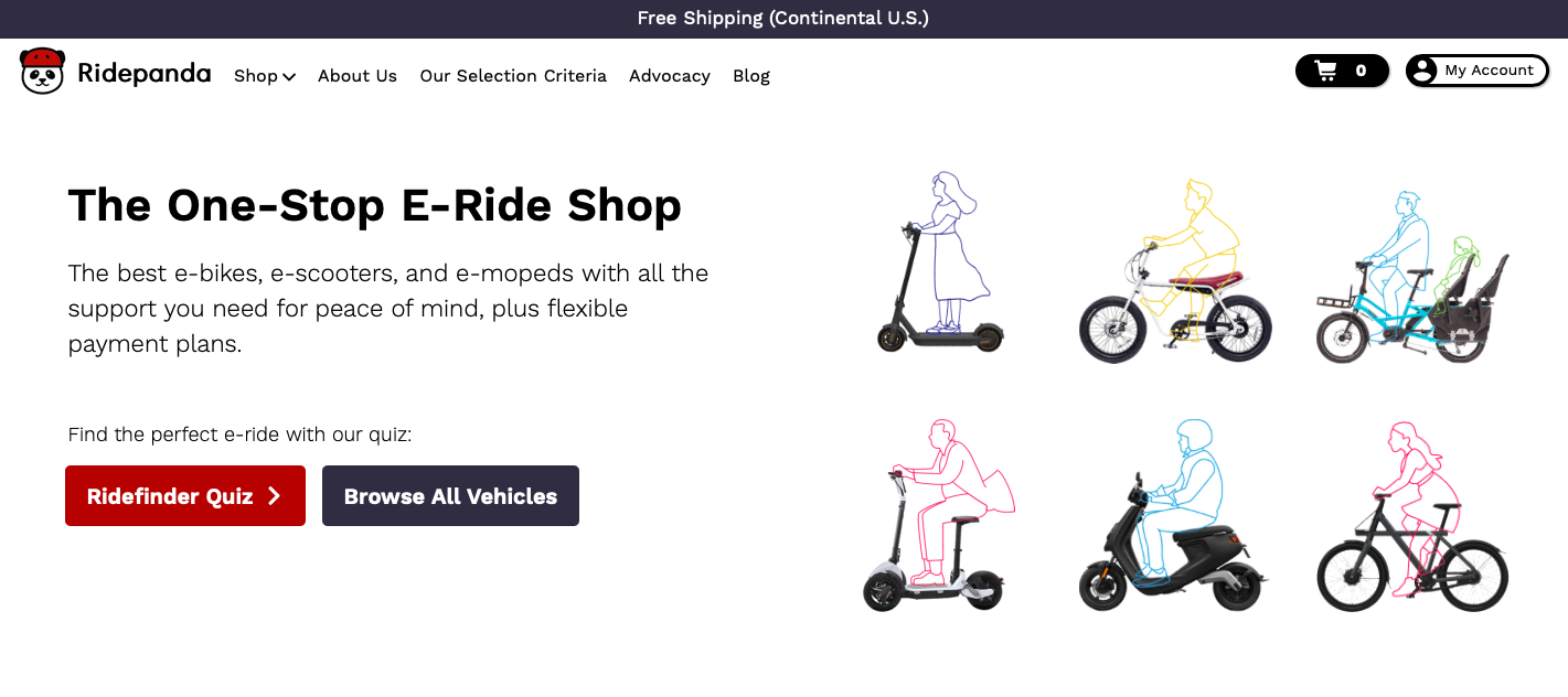 Visitors to Ridepanda will spot the “Ridefinder Quiz,” which lets users select the electric bike, moped or scooter icon, their height and weight, top uses and, finally, preferences, like foldable or cargo and budget. The user is then given a few results that best match their selections. Users can skip this process and just conduct searches based on the three product types or use cases such as “commute,” “adventure,” “delivery” or “accessibility.”