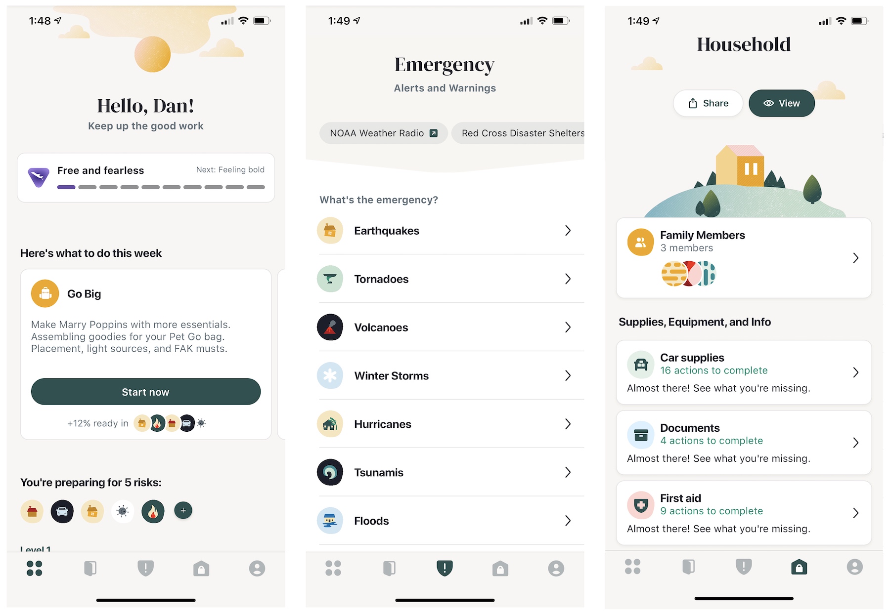 The app gamifies the process of preparing your home and family for whatever crisis may befall them, including common emergencies like house fires and more widespread disasters like earthquakes, fires, etc.