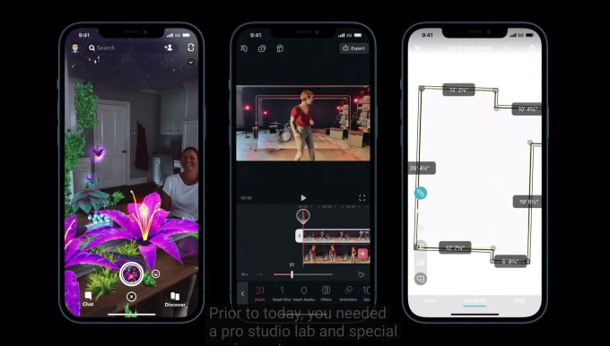 That can lead to new AR experiences like what Snapchat is prepared to introduce. Already known for some best-in-class AR photo filters, the company says it will soon launch a lidar-powered lens specifically for the iPhone 12 Pro models.