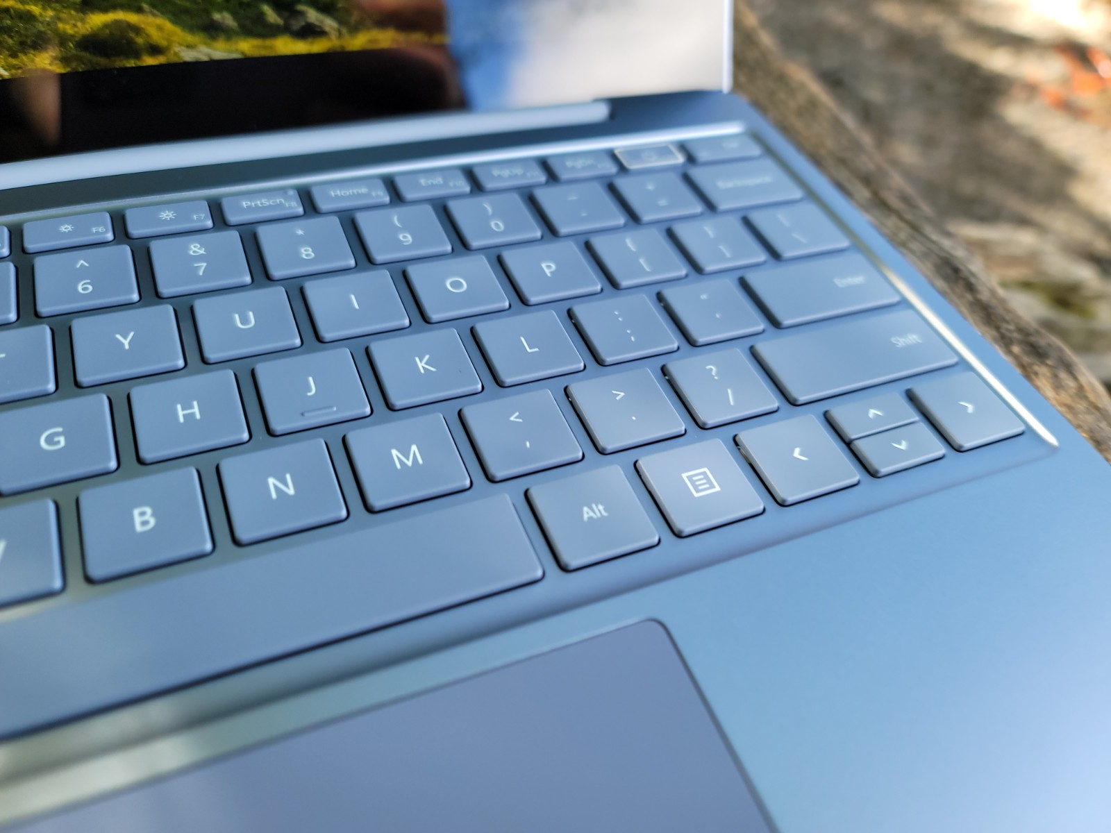 The Laptop Go is a nice-looking, budget laptop. It’s fairly sleek and sits nicely alongside other members of the Surface family. The top and keyboard case are made of aluminum. That’s coupled with polycarbonate composite resin that feels fairly plasticky to the touch. On the tactile front, the keys are a bit soft/gummy for my tastes and will take some getting used to — but it certainly beats typing on the vast majority of keyboard cases.