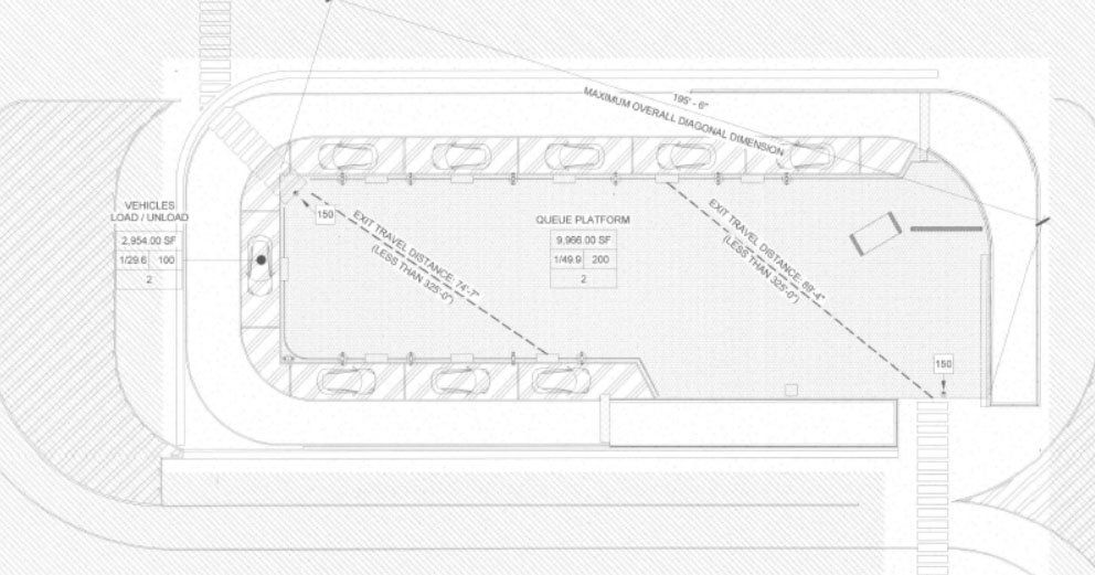 Building plans submitted by The Boring Company include a fire code analysis for one of the Loop’s above-ground stations: