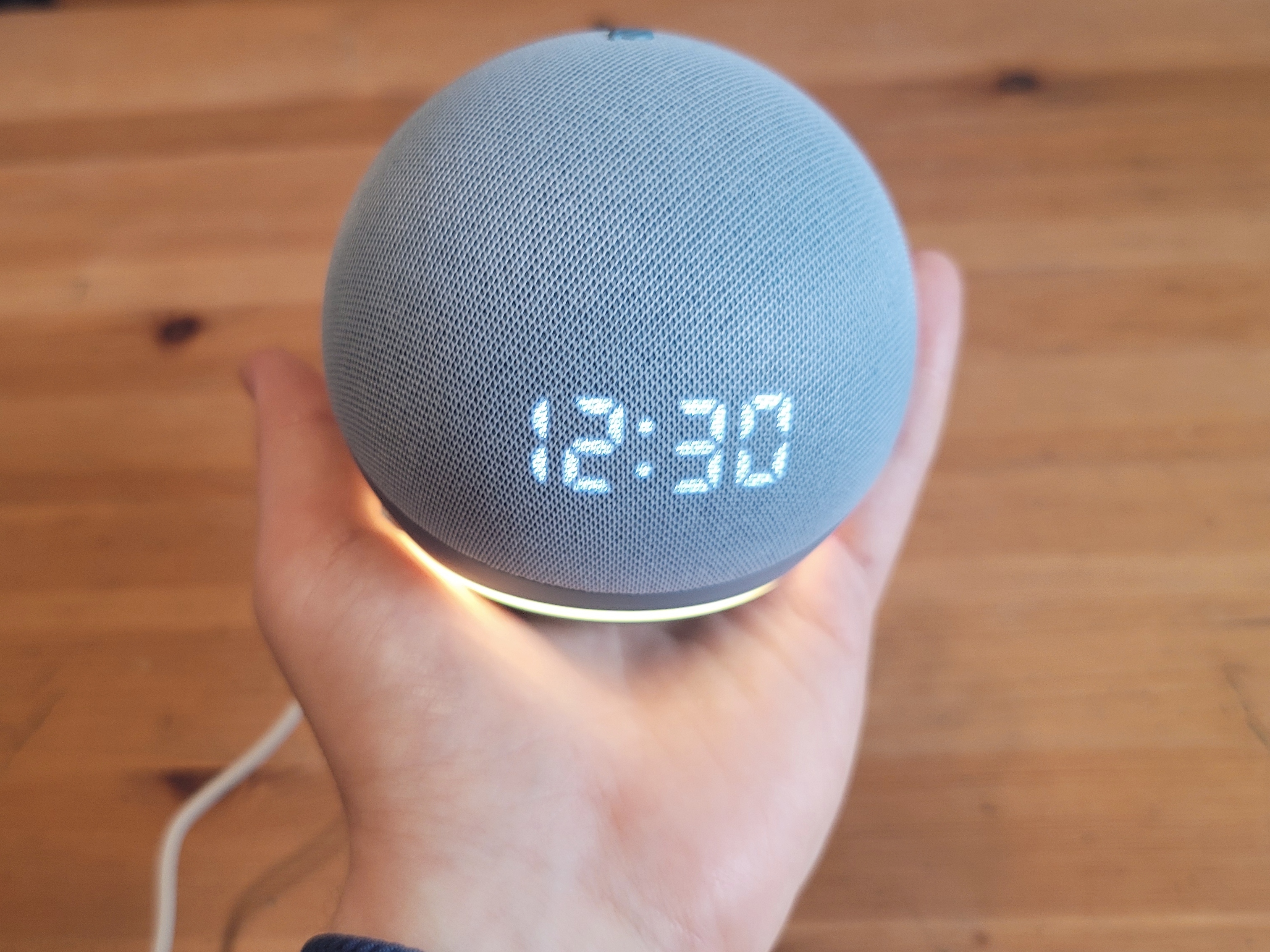Whether that’s a net positive kind of depends on where you put the Echo. If it’s around eye-level, great. If it’s below that, it moves the ring out of view, and you may have to rely on seeing how it reflects off the surface it’s sitting on. For my own use, it’s a small step in the wrong direction. The digital clock (the big differentiator between the two Dots) is also a bit low on the ball, leaving a lot of blank surface area up top.