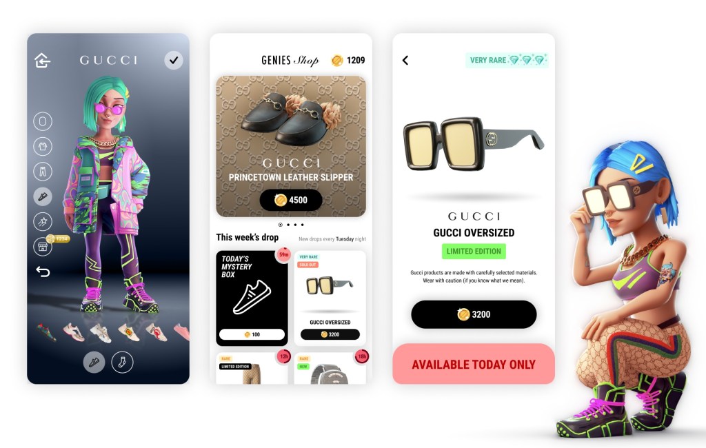 Now, those celebrities and athletes can monetize exclusive digital goods made by Genies on platforms like Gucci and Giphy, and the fashion house and meme generator can now give users their own digital identity to play around with.