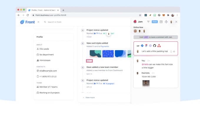 Grant and Irtefa met as product managers at Cloudflare, where they started brainstorming better ways to communicate feedback in a way that felt like “leaving digital sticky notes all over a product,” Grant says. That thinking ultimately pushed the duo to leave their jobs this past May and start building Jam.