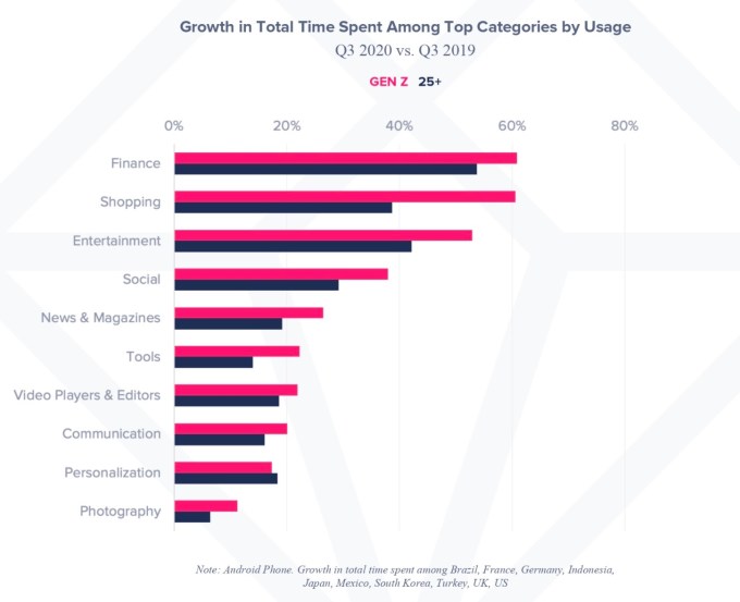 App Annie found that finance and shopping apps haven’t yet reached a broad Gen Z audience, but are demonstrating promising growth.