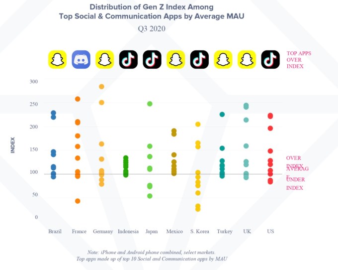 TikTok and Snapchat, in particular, stood out as the top over-indexed social and communication apps among Gen Z in nine out of the 10 markets analyzed for this report. This comes on the heels of Snap’s blowout earnings yesterday, where the social app topped analyst expectations and saw daily user growth climb 4% to 238 million.