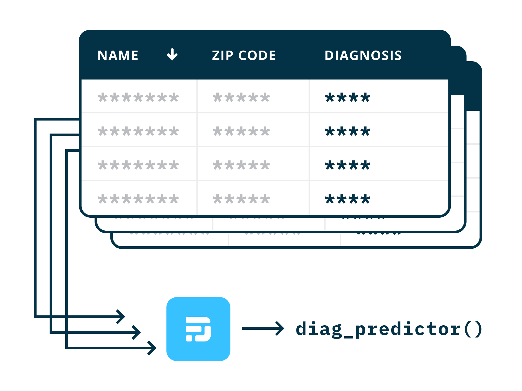 DataFleets integrates with both sides of a secure gap between a private database and people who want to access that data, acting as a trusted agent to shuttle information between them without ever disclosing a single byte of actual raw data.