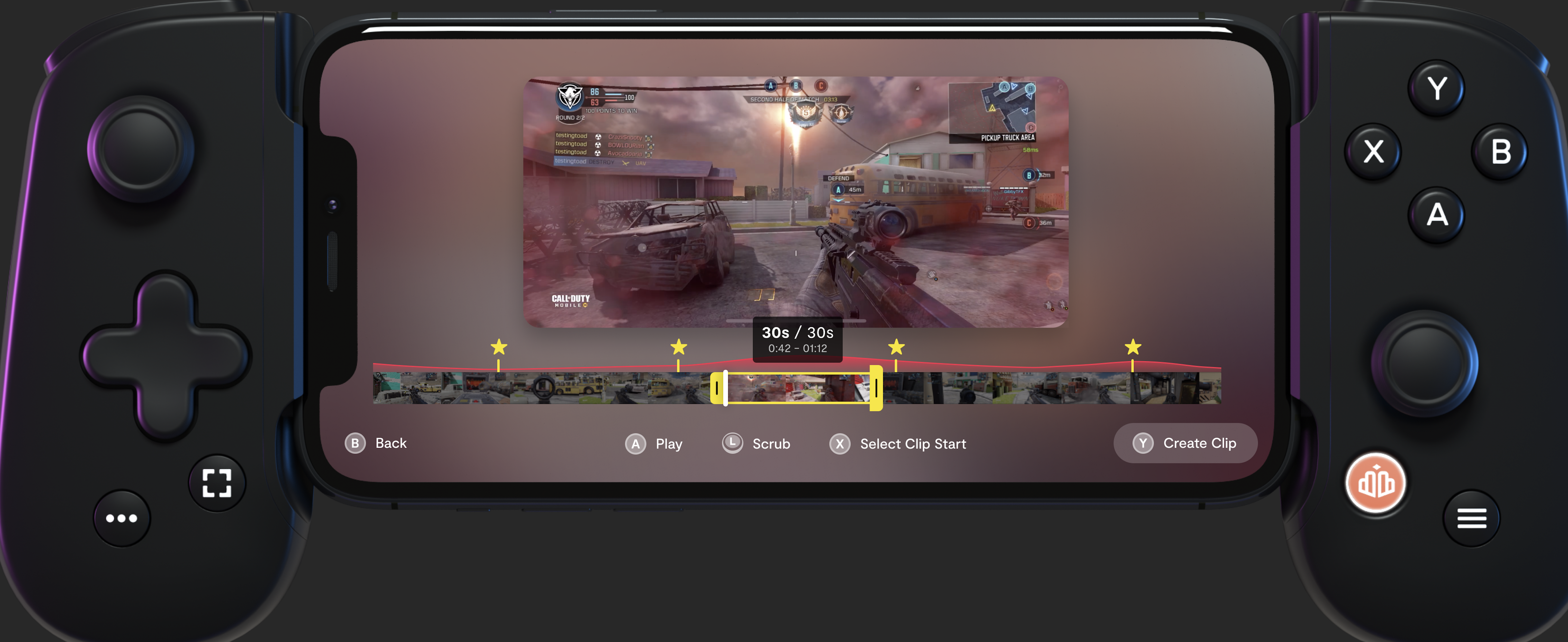 It also enables any-time recording of clips and highlights that store locally on your device but can be uploaded anywhere at 1080p/30fps HEVC. When you’re in game you can just smash the Capture button to start recording and tap it to screenshot. The Backbone app also has some ML work going on to identify highlight-worthy clips and mark them automatically. You can also tag them yourself while you play.