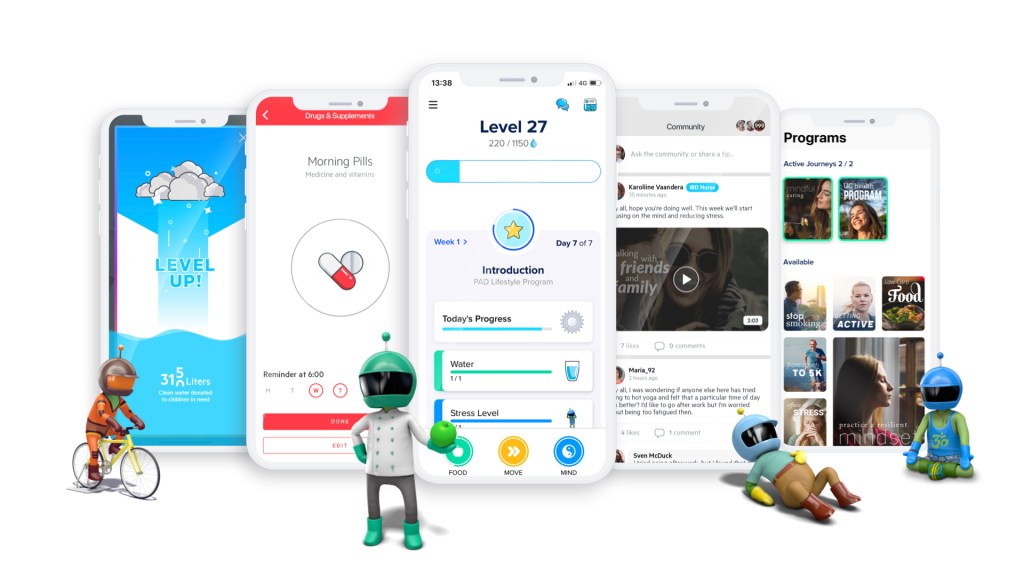 The 2014-founded startup has built a gamified digital care platform that targets chronic and lifestyle disease management via digital nudges from a helmet-wearing cartoon helper — pushing patients toward relevant information to support more beneficial lifestyle choices (e.g. taking regular exercise, or cutting down on smoking), as well as offering help with patient treatment management, such as via digital reminders for taking medication and remote patient monitoring for clinicians.