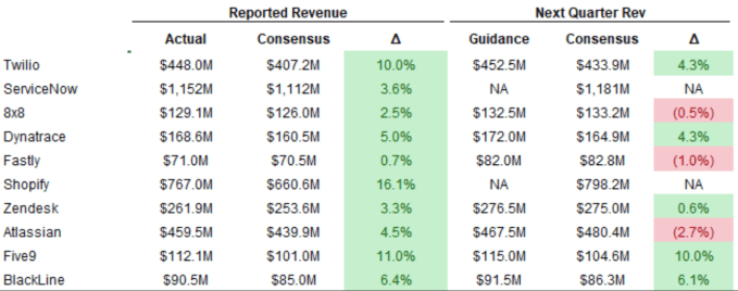 From that malaise we turn to the SaaS and cloud world. Redpoint’s Jamin Ball is doing his usual roundups, one of which we’re borrowing this morning. Here’s his digest of SaaS and cloud earnings thus far: