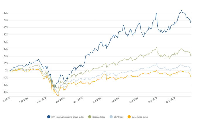 Investors may be taking note. Here’s the Bessemer Cloud Index since the start of 2020: