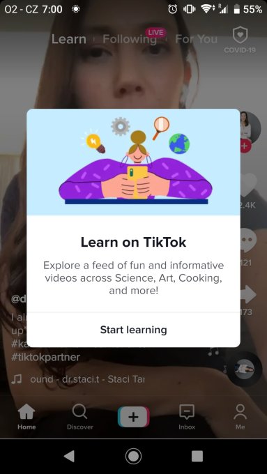 Featured prominently alongside “For You” and “Following” at the top of the home screen, TikTok describes Learn as a place to discover how-to and informative videos posted by users that take viewers through making food, producing art, how scientific processes work and more.