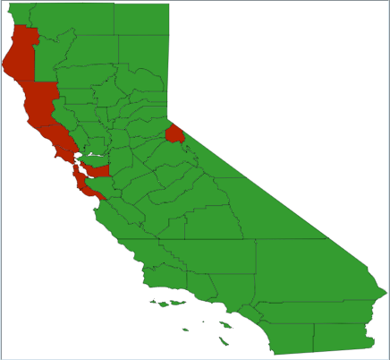 The current count is 58.4% in favor of Prop 22 and 41.6% in opposition. Below, you can see how mostly counties in Northern California along the coast drove the opposition.