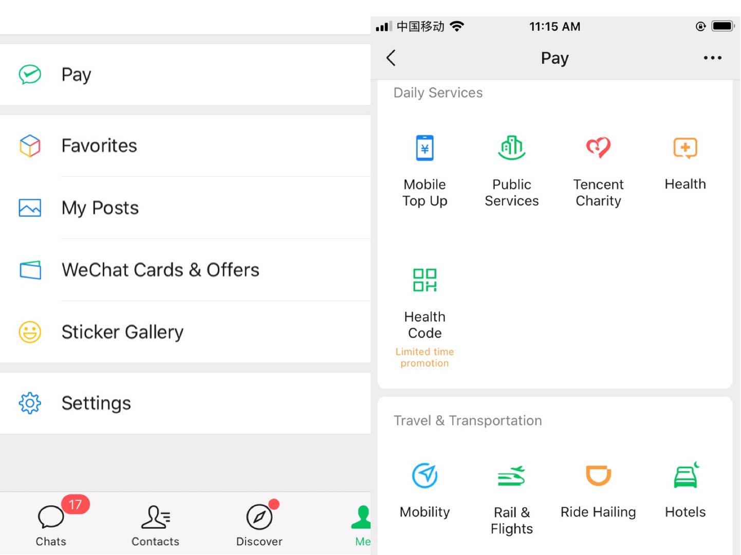 At the end of the day, the two services have distinct user scenarios. The fact that WeChat Pay lies inside a messenger makes it a tool for social, often small, payments, such as splitting bills and exchanging lucky money, a custom in China. Alipay, on the other hand, is associated with online shopping.