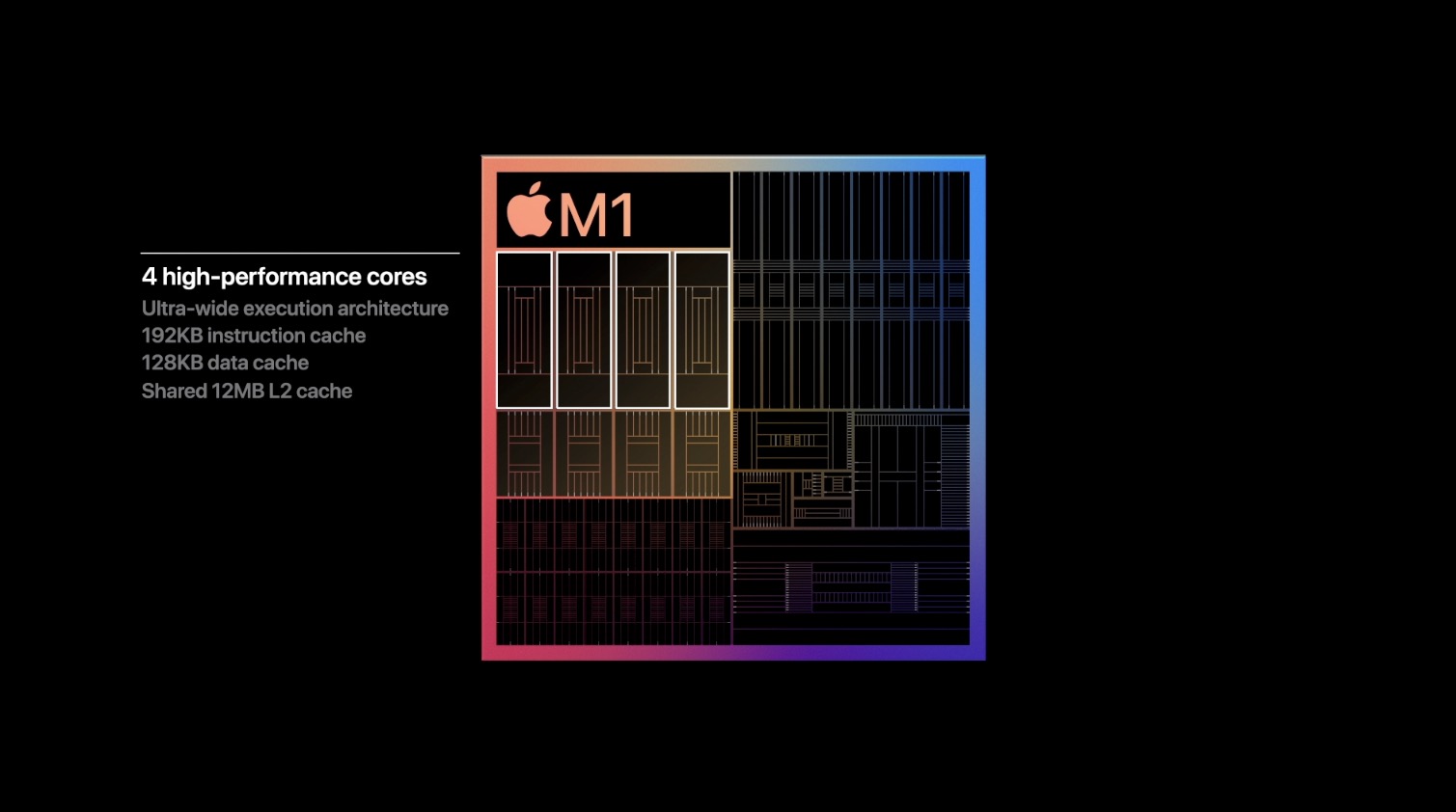 The M1 will feature four high-performance cores and four high-efficiency cores, following what has long become the standard for Arm chips.