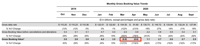 How is that possible? Recall that the gross bookings figure discounts cancellations and alterations. So, if Airbnb had a big wave of cancellations, its gross bookings number could fall so sharply it goes negative, even if the company were still seeing some new bookings.