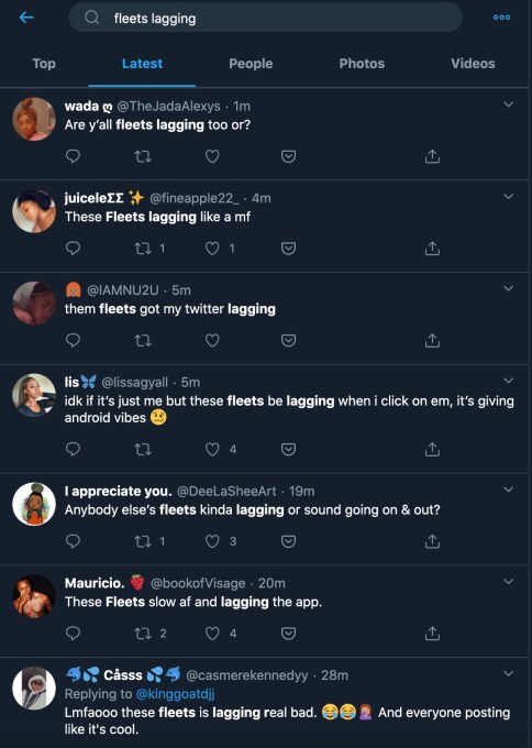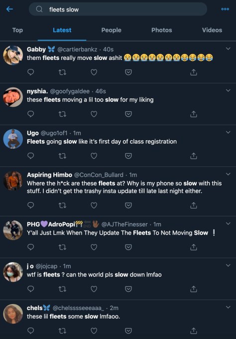 Twitter’s new Stories feature, “Fleets,” appears to be struggling under the load. Launched this morning to Twitter’s global user base, Fleets appear at the top of the Twitter app, allowing users to post ephemeral content that disappears in 24 hours as well as view stories posted by others. But user demand and curiosity about the new addition seems to be impacting the product’s performance. Many Twitter users are reporting Fleets are lagging and moving slowly. Some even say the feature is crashing their Twitter app.